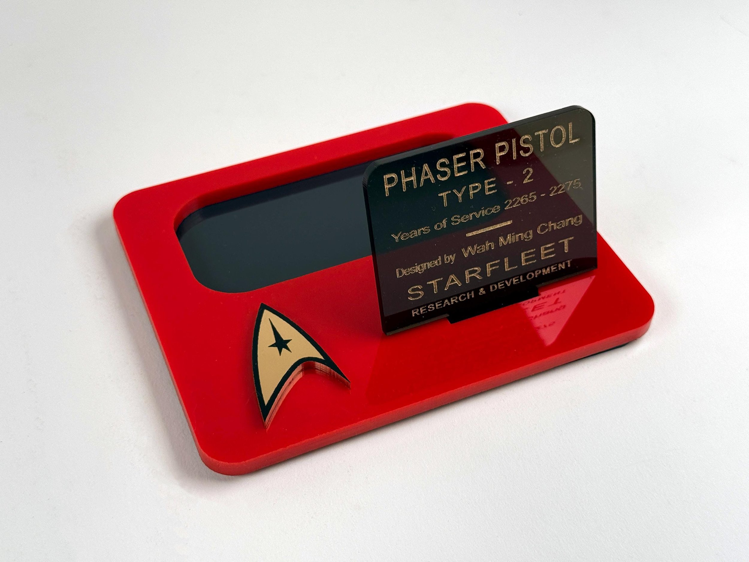 Deluxe Star Trek Phaser Display Base for Wand Company Phaser! Custom Made. Museum Quality.