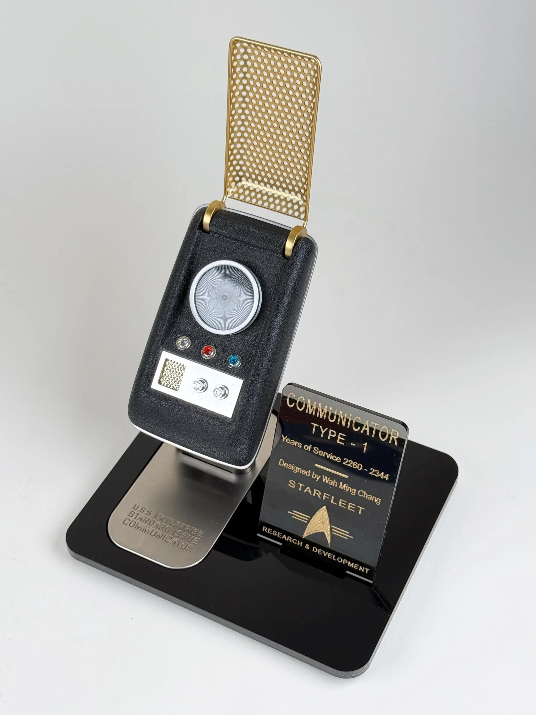This display stand DOES NOT include the Communicator replica. The one shown in the photos is for demonstration purposes and illustrates how yours will look when displayed on this wonderful display stand.