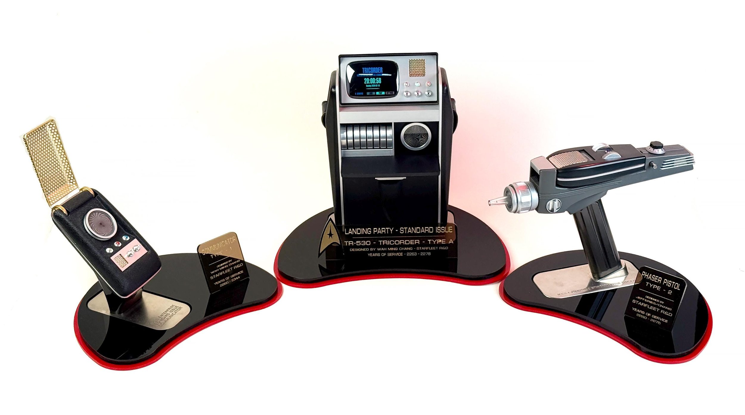 STAR TREK Landing Party Mk. II Custom Display Stand for Wand Company Tricorder, Communicator and Phaser!
