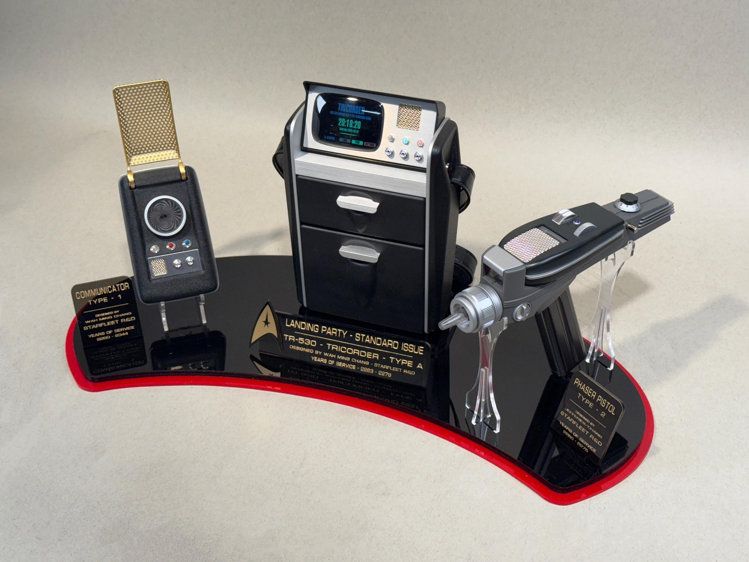 Universal STAR TREK Landing Party Custom Display Stand for all Tricorder, Communicator and Phaser replicas!